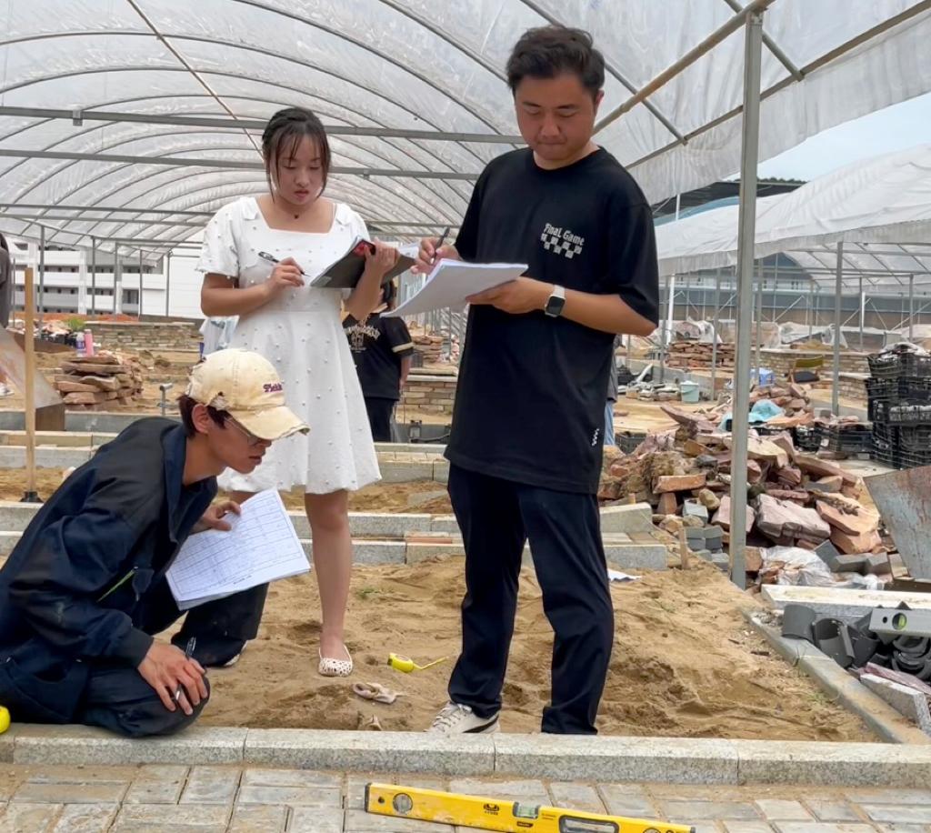 为了提升园林工程的活力,增强学生对园林景观施工的理解能力,并加强他们对园林景观工程施工质量管理与控制的认识,园林系于2023年6月17日9:00,在后山施工实训场地举办了园林景观施工大赛。比赛由张家港老师主持,参赛选手们积极参与。