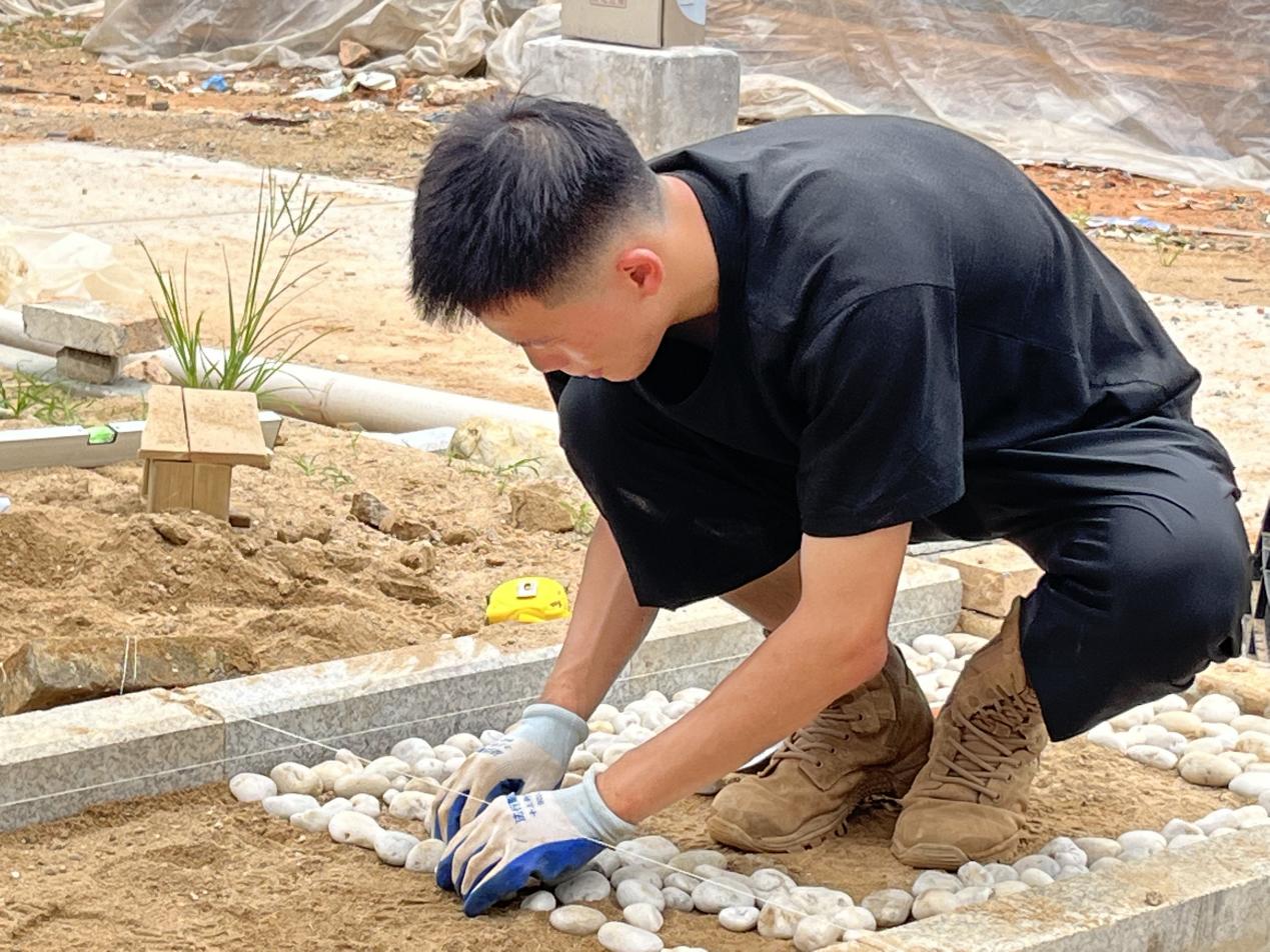 比赛进入白热化阶段,园林景观施工要求选手具备工程测量和施工放样等能力。参赛选手们熟练运用各种工具,发挥自己的创意,并将所学知识与技能充分展示在作品上。他们全身心地投入比赛,小组成员之间默契配合,在最后的0.5小时里进行收尾工作。参赛选手们通过比赛展示了扎实的基本功和优秀的技能素养,为园林系培养了更多的职业技能人才。