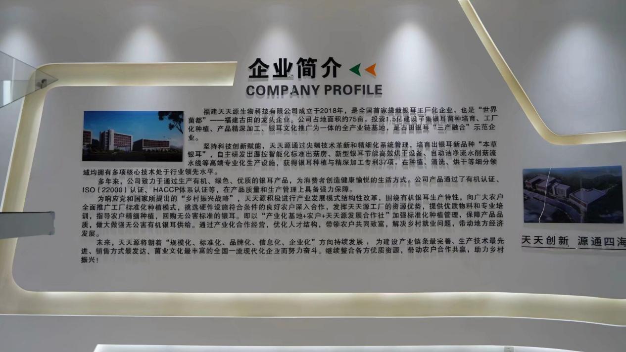 最后,前往大桥镇参观福建天天源生物科技有限公司。在负责人的带领下参观了银耳的培养室,了解到起初银耳是野生生长的,后来有了段栽,再慢慢到瓶栽,但由于瓶栽产出数量不多,就发展到现在的袋栽银耳,提高了产量。该公司坚持“用智启动市场、用力拉动市场、用情激活市场、用品征服市场”,加强菌种研发、种源保护。