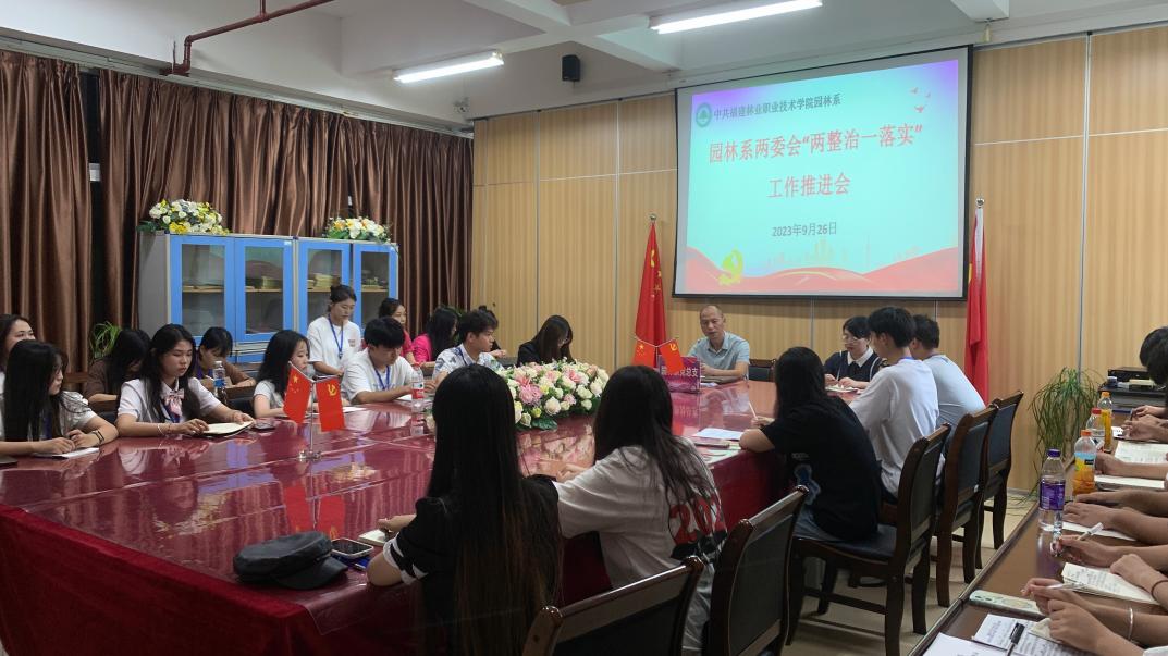 两委会作为园林系与学生之间的桥梁和纽带,在管理和服务中起着重要作用。为提高两委会工作的质量和效率,9月26日下午在林学楼3楼会议室,由园林系党总支书记陈剑勇、学生科科长兼团总支书记吴锦鸿为园林系两委会开展“两整治一落实”工作推进会。