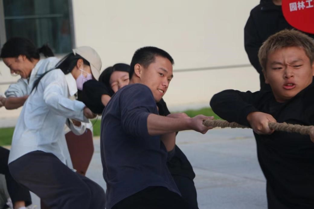 舒筋骨,健身心,炫青春。为增强大学生身体素质,增加同学的团结意识,2023年11月14日16:00,园林系于园林楼前举办拔河比赛,园林系各班同学积极到场参加。
