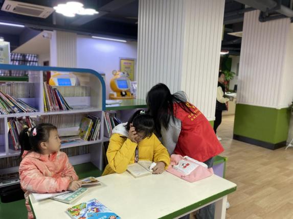图书馆内随处可见忙碌的志愿者,虽然他们身体上感到疲惫与劳累,但是看到小朋友们找到图书后沉浸在知识的海洋中露出笑脸时,志愿者们也收获了巨大的满足和喜悦。