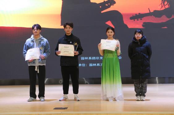 经过激烈角逐,最终获得才艺秀一等奖的是小品《你好、李焕英》;二等奖的是《慢冷》、《you and me》;三等奖的是《小情歌》、《雪落下的声音》、《同花顺》。分别由园林系辅导员刘延君、周婧丹、林晓芳老师为获奖同学颁奖。