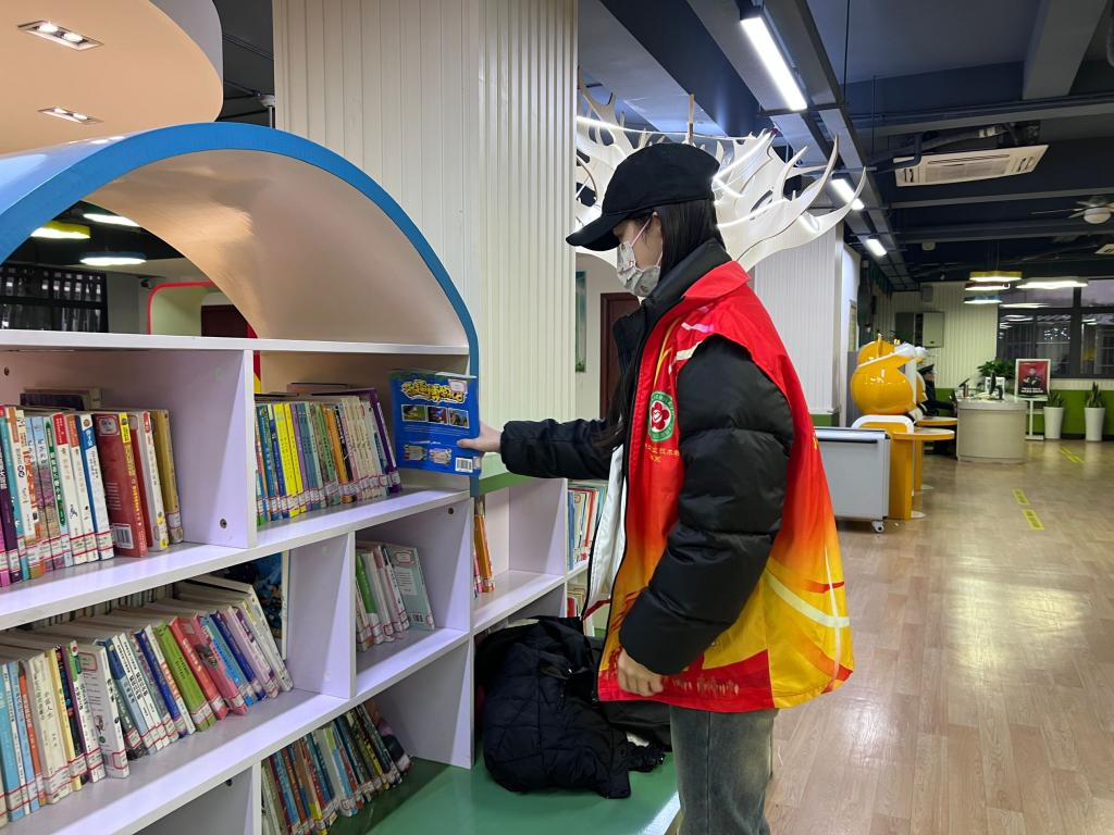 志愿者在相关工作人员的指导下,深入了解自己岗位的具体职责,以认真负责的饱满精神状态在相关区域内开展工作。积极热心地帮助办理借书业务的人员,同时帮助归纳整理放错位置的书籍,并以积极的状态接待、引导借还图书的青少年,维持现场的公共秩序。
