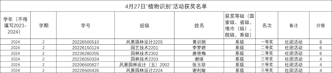 本次比赛让选手们理解了植物识别的意义,识别植物的诀窍、常见科的鉴别、属种鉴别趣味多、到野外认植物等相关知识,通过相关的专业技能竞赛,不仅巩固了课程教学效果,进一步提高了同学们的专业技能水平,还增强了同学们的沉着冷静、精益求精的综合素质,这对于普及植物学知识极有意义,为专业技能的学习打下了良好的基础。