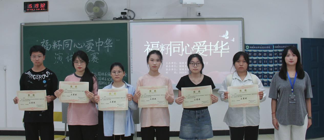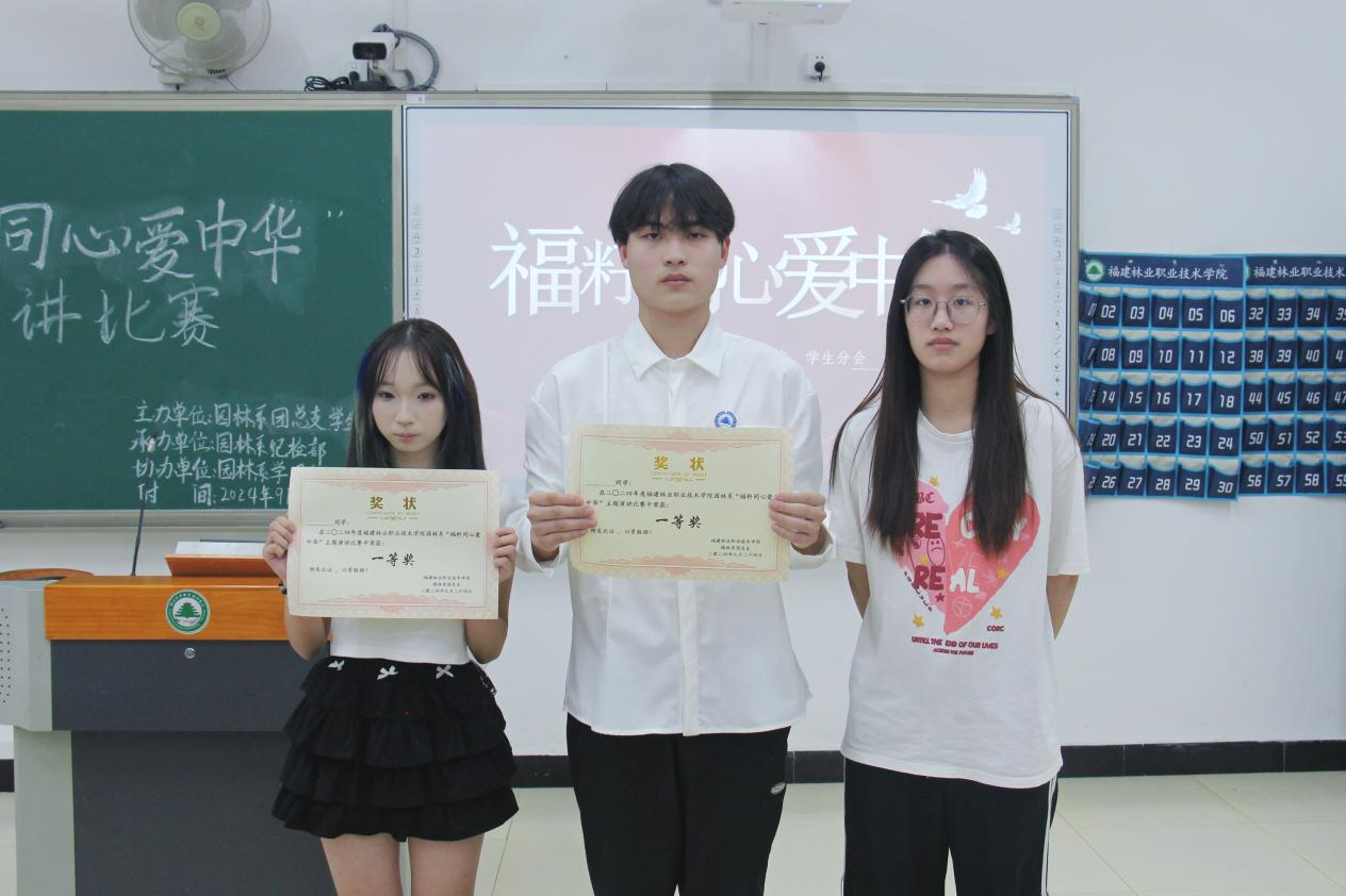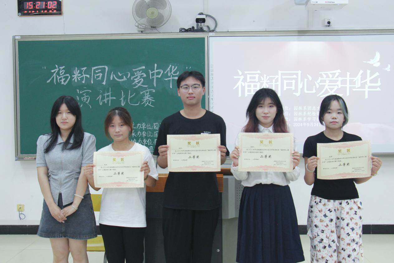 为培养大学生爱国情怀,弘扬爱国主义精神,传承红色基因,增强大学生文化自信和民族自豪感。2024年9月24日14:00,园林系举办“福籽同心爱中华”主题演讲比赛。此次活动由园林系团总支、学生分会主办,园林系纪检部承办,园林系学习部协办,园林系各班学生积极到场参加。