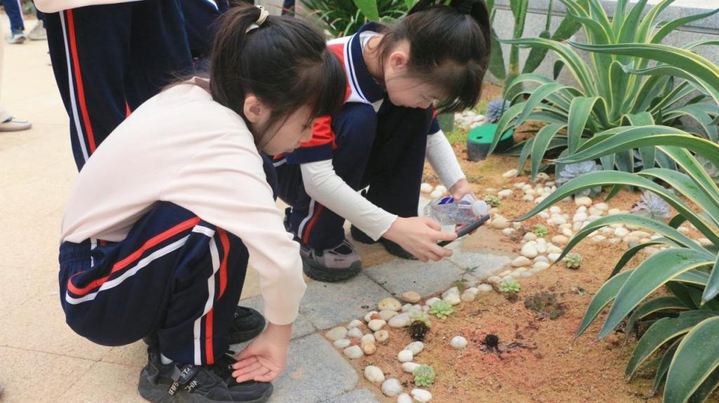 活动伊始,小朋友们在志愿者的带领下有序进入园林楼,跟随着赵湾湾老师的步伐来到了十万洁净植物工厂,通过讲解小朋友们认识到了相同培养环境下多样式的植物。在生态景观教育科普基地的花卉产业生产基地中,小朋友们近距离接触和观察各式各样的植株,亲近自然的同时认识了不同种类植株的特色及其生长环境。实地感受校园环境、了解学校文化的同时真切感受到了园林文化的独特魅力。