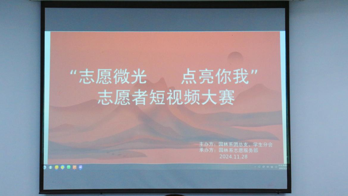 以视频为媒,借光影之力传播志愿火种。为弘扬志愿者精神、发扬奉献精神,培养优良校园志愿服务风气,2024年11月28日于园林楼举办园林系“志愿微光,点亮你我”志愿者短视频大赛。