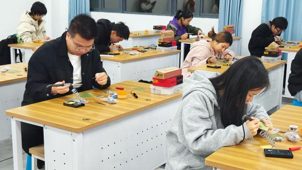 为激发并培育同学们实践能力和创新思维,深化同学们的焊接技艺,促进校园文化的多元化发展。2024年11月29日园林系电子产品创新协会于园林楼405开展“焊锡技艺彩,熔绘创意花”比赛。