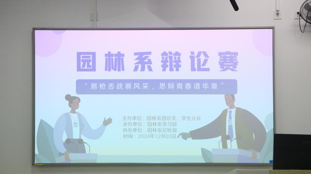 为了锻炼同学们的逻辑能力,考验他们的应对能力,让其能够深度思考。2024年12月3日下午13:00,园林系于园林楼405举办“唇枪舌战展风采,思辩青春谱华章”辩论赛决赛。此次比赛由园林系团总支、学生分会主办,学习部承办,纪检部协办。