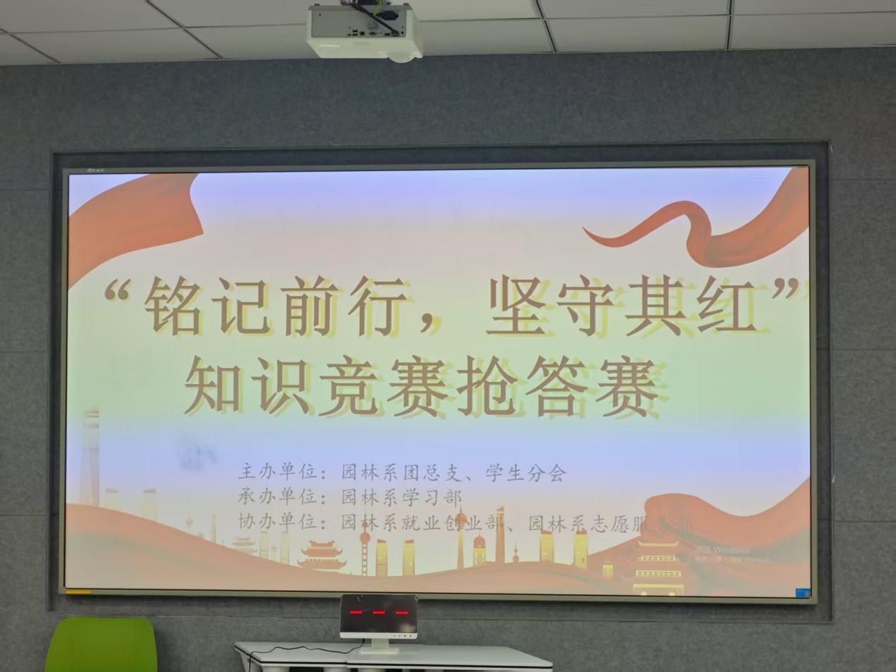 为深入传承红色基因,大力弘扬爱国主义精神,2025年5月6日,园林系成功举办“铭记前行,坚守其红”知识竞赛抢答赛。此次活动吸引了众多园林系学子踊跃参与,以知识竞答的形式,为同学们带来一场别开生面的红色文化学习之旅。