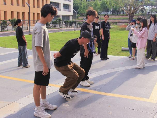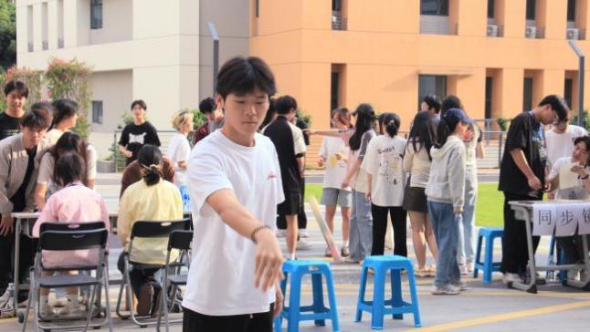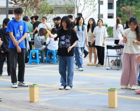 运动会设置了趣味保龄球、裁判说、趣味投壶、同步镜像挑战及“就不听指挥”五大赛事。趣味保龄球以篮球为投掷器具,同学们在模拟赛道上尝试各种姿势,在精准控制力度与角度的过程中,尽情施展运动策略;“裁判说”项目以指令为令,选手们全神贯注的模样与偶尔因反应不及而闹出的小笑话,让现场观众忍俊不禁;趣味投壶以筷子为箭矢、纸箱为壶器,当筷子破空而入纸箱时,清脆的声响与同学们的欢呼交织在一起;同步镜像挑战中,搭档们为了在限时内以高度默契完成动作复刻,做出各种搞怪又可爱的动作;“就不听指挥”打破常规思维定式,反逻辑指令让选手们手足无措,现场气氛被一次次推向高潮。