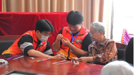 活动当天,志愿者们第一时间关切慰问老人们的身体状况,耐心聆听他们的生活故事与心声,在轻松愉悦的交谈氛围中,此次志愿活动正式拉开序幕。随后,志愿者们将提前准备的折纸材料分发给每一位老人,并耐心地向老人们讲解和示范如何折叠出星星、千纸鹤、青蛙等造型各异的折纸作品。老人们专注地跟随志愿者的指导,尽管岁月让他们的手指不再灵活,但那份认真投入的神情,仿佛回到了充满童趣的年少时光。当第一颗折纸星星在老人手中诞生时,活动室里瞬间响起阵阵欢快的笑声,温馨与欢乐的氛围弥漫开来,这一刻,时间仿佛定格,满溢着纯粹的快乐与浓浓的温情。