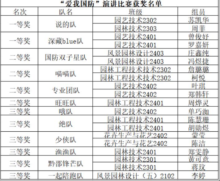 为深入贯彻落实新时代全民国防教育要求,全面提升大学生国防观念与国防素养,凝聚青年学子关心国防、建设国防的强大合力,2025年5月13日,园林系“爱我国防”主题演讲比赛在园林楼602教室隆重举行。