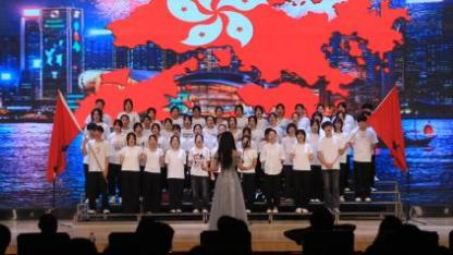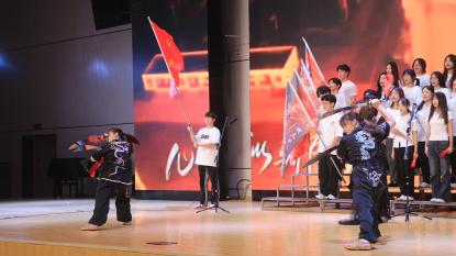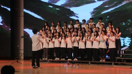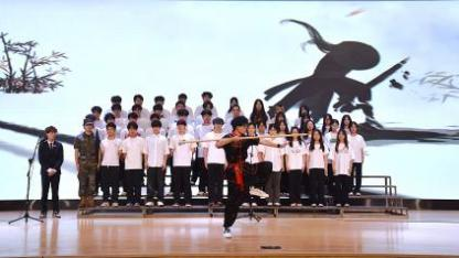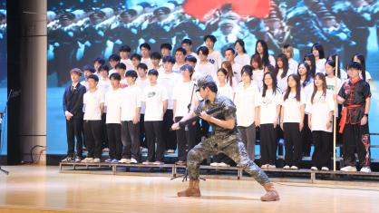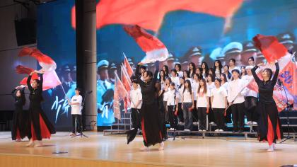 随着舞台灯光渐次点亮,现场欢呼声此起彼伏,晚会正式拉开帷幕。各参赛班级步伐整齐、意气风发,身着统一白色服装,搭配精心设计的配饰,尽显新时代青年的蓬勃朝气。所有参赛队伍以昂扬之姿共唱《天麟之歌》,嘹亮合声瞬间响彻全场,深情诉说着学校的悠久历史。随后,一曲曲经典红歌轮番上演。当指挥的手臂划出优美弧线,激昂的音符便化作炽热情感在体育馆内回荡。《我爱你,中国》婉转深情,将学子们对祖国山河的眷恋娓娓道来;《我和我的祖国》节奏铿锵,唱出对万里山河的崇高敬意;《紫荆花盛开》旋律优美,深情诉说着对香港回归祖国的喜悦与祝福。舞台上,同学们手持闪耀的红星灯牌,有力挥舞着手中红旗,以清澈坚定的嗓音抒发爱国情怀,通过整齐划一的队列变换与创意十足的舞台设计,将青春热血与理想信念融入每一个音符,用歌声诠释着新时代青年勇担使命、逐梦前行的坚定决心。