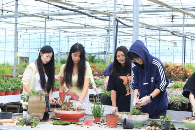 为引导园林系专业学生深入践行绿色生活理念,强化生态保护意识,推广低碳可持续的居家绿化风尚,同时为学生搭建身心减压疗愈平台,2025年5月27日,园林系在后山大棚成功举办“拯救手残党!”植物组盆比赛。此次活动吸引众多学子参与,现场气氛热烈,创意与绿意交织,展现出园林系专业独特的魅力与活力。