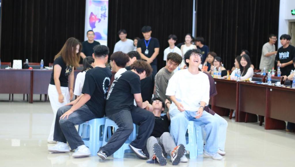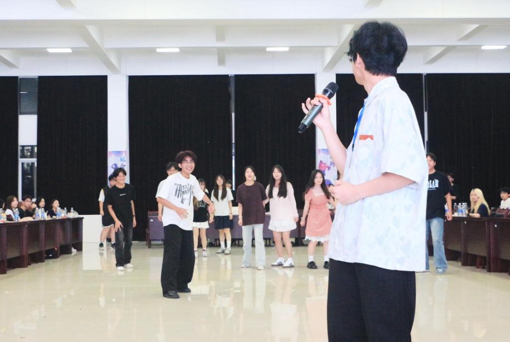 晚会以轻松愉悦的游戏环节开场,“一二三木头人”的口令下达,学生干部们迅速凝神定形,尽管努力保持严肃,现场仍不时响起忍俊不禁的轻笑声;随后“抢椅子大战”将气氛推向高潮,随着明快的音乐节奏,大家敏捷转身、巧妙占位,尽情释放青春活力,展现出课堂之外的别样风采;而“裁判说”游戏更是一场反应力的激烈较量,指令的突然转变,让不少经验丰富的“老将”也手忙脚乱,意外频出的欢乐场景,引得全场掌声与笑声交织,洋溢着轻松融洽的氛围。
