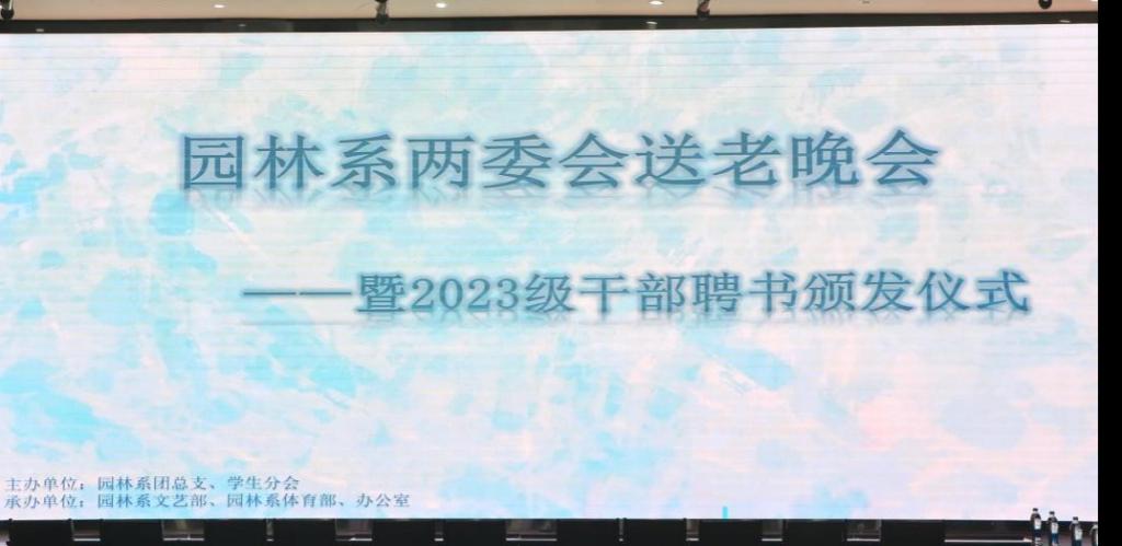 这场送老晚会,以趣味游戏串联起欢乐回忆,以聘书颁发礼赞奉献精神,既是对往昔并肩奋斗岁月的深情回望,更是园林系大家庭对卸任学生干部的集体致敬。相信园林系学生工作的接力棒,必将在感恩与传承中顺利传递,激励新一代学生干部勇担使命,继续书写充满活力与担当的崭新篇章。
