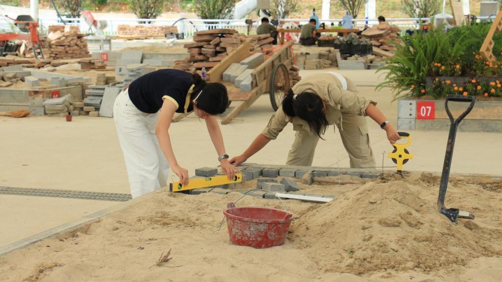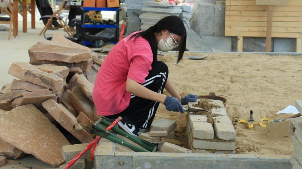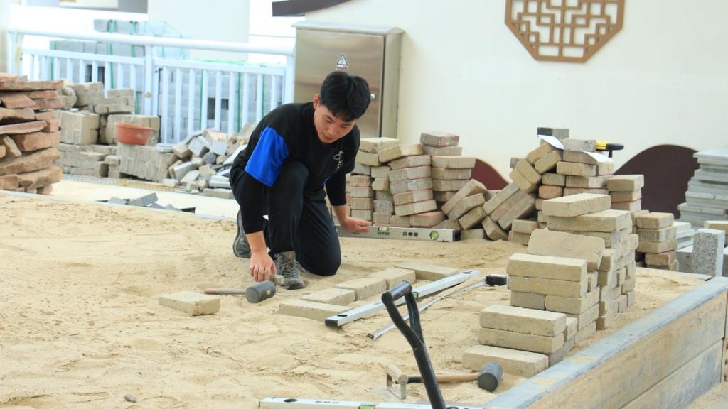 随着比赛正式启动,选手们迅速投入紧张而有序的创作之中,每一次测量校准、每一道勾缝工序,都凝聚着他们对细节的执着追求,砖石的堆叠错落间,展现出独特的空间美学与结构智慧。烈日下,汗水浸湿衣衫,却丝毫未减他们的创作热情,每一块砖的铺设,都承载着对专业的热爱与精益求精的工匠精神。