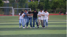 比赛正式开始,率先登场的六人七足项目瞬间点燃全场热情。参赛队伍的六名队员两两相邻,脚踝用绑带紧紧相连,彼此肩并肩、臂挽臂,眼神中满是坚定与自信。随着裁判一声令下,“一二一!一二一!” 整齐响亮的口号声回荡在操场上空,各支队伍步伐一致、奋力向前冲。每一位参赛队员都拼尽全力,用挥洒的汗水诠释着团结协作的力量,将集体荣誉感展现得淋漓尽致。