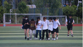 与此同时,跳大绳比赛现场同样精彩纷呈。两名摇绳队员全神贯注、动作娴熟,长绳在他们手中有节奏地挥动,在空中划出一道道优美的弧线。跳绳的队员们则严阵以待,紧盯长绳起落的时机,轻盈跳跃。尽管过程中偶有失误,但各参赛队伍凭借出色的团队协作能力与精湛的跳绳技巧,迅速重整旗鼓,不断挑战更高的跳绳纪录。赛场上,长绳翻飞、人影跃动,与此起彼伏的加油助威声交织在一起,构成了一幅充满活力与激情的青春画卷。