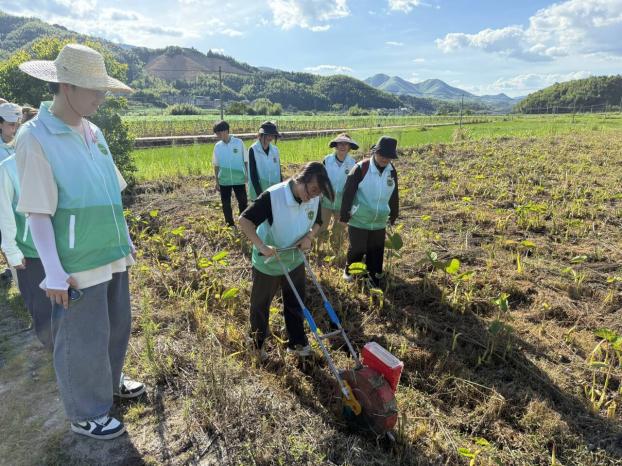 傍晚,队员们走进玉山镇东山村田间。在村民指导下,认真学习黄豆种植的相关知识并展开种植实践。当前该地农业生产方式由传统手工农耕变为机器辅助耕作,节省了人力物力,让种植速度加快且产量更高。队员们在劳作中留下了辛勤的汗水,深刻体会到农民在农业生产中所面临的艰辛和不易,进一步增强他们助力乡村振兴的责任感和使命感。