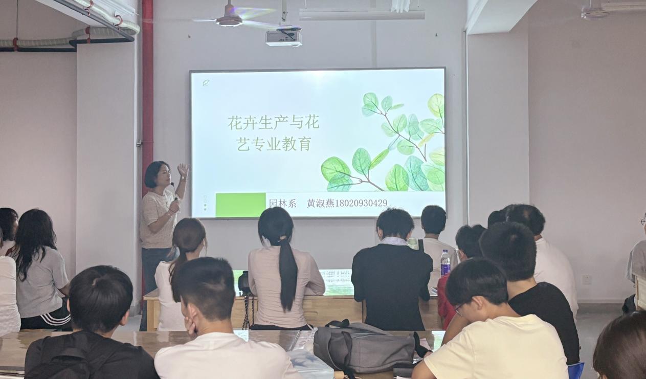 为切实做好2025级新生入学教育,帮助新生全面了解专业特色,了解专业就业前景,合理规划未来。2025年 9月11日,园林系开展2025级新生入学教育之花卉生产与花艺专业介绍会。此次活动由园林系党总支书记黄淑燕主讲,各班辅导员、助导组织2025级花卉生产与花艺专业新生参加。