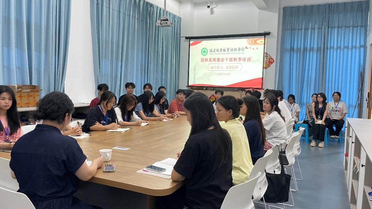 2025年9月16日,园林系以“提升能力,服务园林”为主题,在两委会组织召开干部秋季培训会议。学生科科长兼团总支书记吴锦鸿老师主讲,两委会全体干部参会,会议旨在强化学生干部履职能力,明确新学期工作方向,为系部各项工作高效开展筑牢根基。