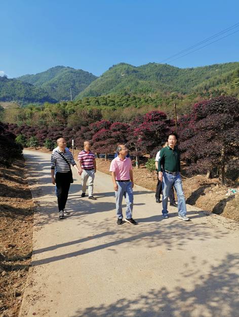 随后,大家在公司李董事长、吴经理和陈场长的带领下对苗木基地进行实地考察。福建昊铭现代农业发展有限公司成立于2014年2月,短短五年多成绩斐然,基地已建成全国最大红花继木树桩造型基地,公司业务遍及南方各省市,年产值达1亿元。公司位于有四贤故里、邹鲁名邦之韵的延平,京福高铁、鹰厦铁路、横南铁路、京台高速互通、316、205国道穿行而过,交通十分发达便利。其苗木生产培育基地座落在道教名山——米山,理学大师罗从彦故居地。集人文与自然景观为一体的现代农业山庄,项目占地面积2136亩,投资规模达2.3亿元,目前已引进培育了美国红枫、香樟、红叶石楠、红花檵木树桩盆景、金叶水杉、蓝花楹、桂花、银杏、日本樱花、罗汉松、紫薇、金花茶、红豆杉、加宝果、海南黄花梨、沉香木、金丝楠木、红花勒杜鹃等10余种珍稀树木,另有几十种绿化苗木和特色农业。