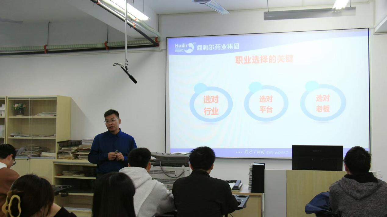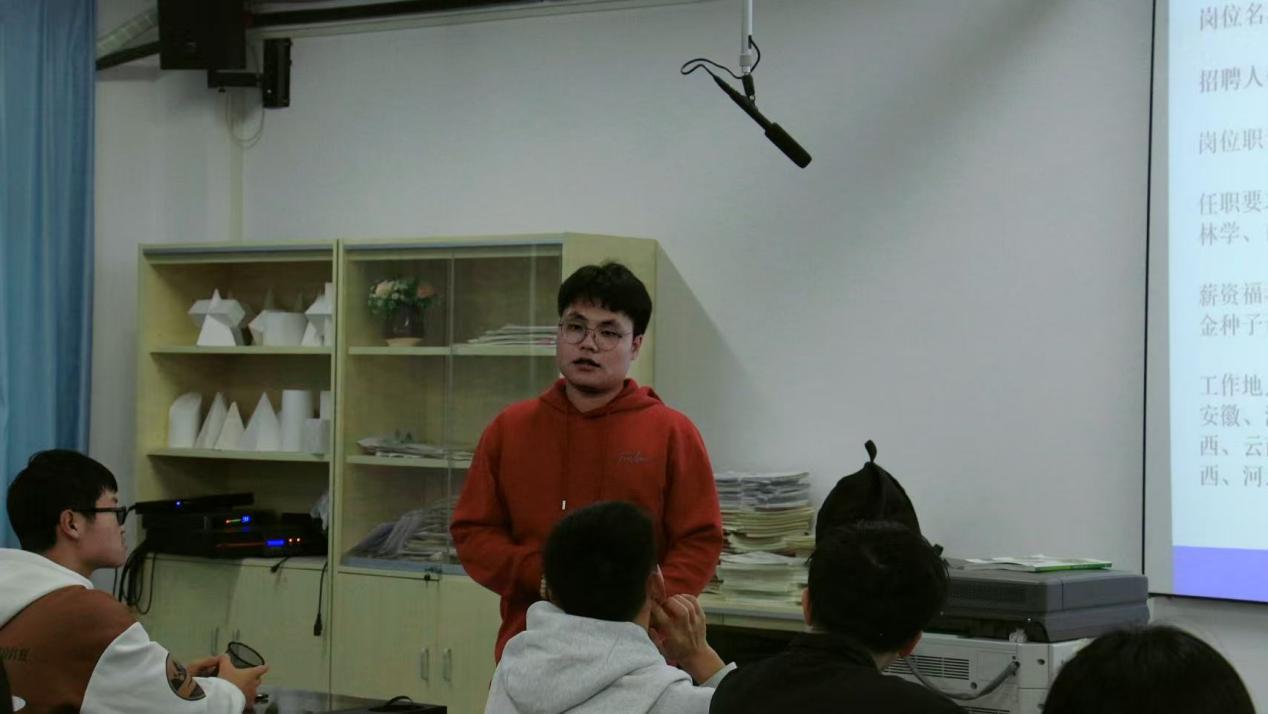 招聘会现场,海利尔药业集团人力资源总监李雄水通过企业宣传片结合现场讲解的形式,全方位展示企业发展脉络、主营业务、市场竞争力及全国运营版图,让在场学子直观清晰地了解企业综合实力与发展潜力。随后,入职该企业的园林系学长施建峰分享一线工作经验,详细介绍岗位涵盖的田间实验、市场推广、会议销售等核心内容,坦诚告知学子需适应的工作强度,同时提及公司完善的企业微信沟通平台,为学子快速获取工作信息、高效协作提供便利,让同学们对岗位实际工作场景有了更真切的认知。