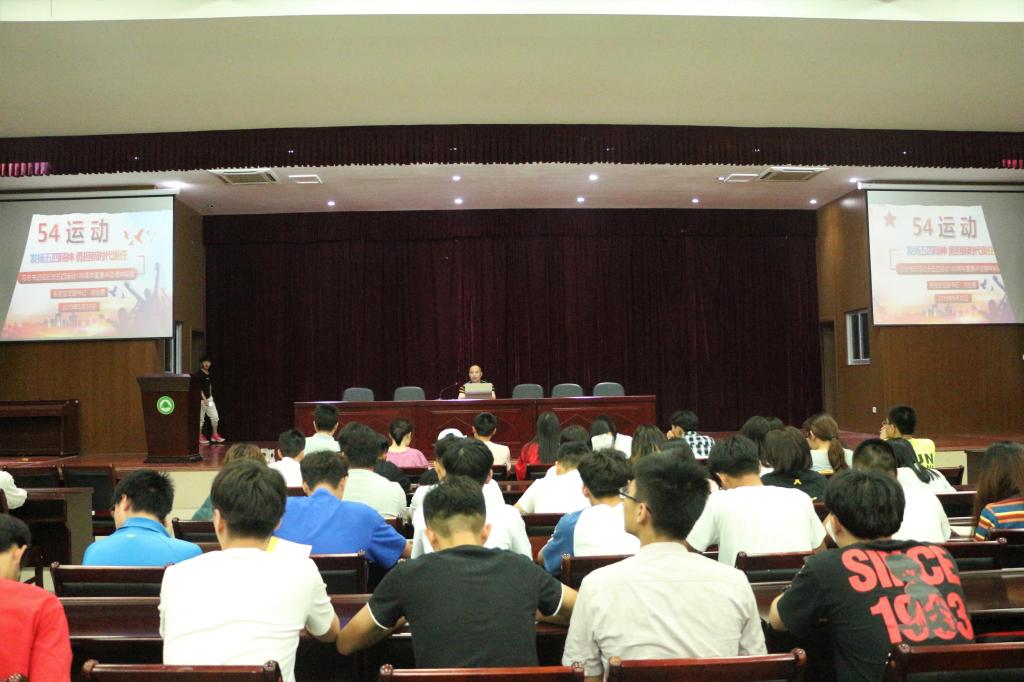 为学习贯彻习近平总书记在纪念五四运动100周年大会上的重要讲话精神,引导我系青年学生继承和发扬五四精神,2019年5月20日晚上19点整,园林系于江南礼堂开展《发扬五四精神 勇担新时代重任——习总书记在纪念五四运动100周年大会上的重要讲话精神解读》讲座。园林系学生管理科科长兼团总支书记吴旻老师、园林系辅导员孙钰老师、两委会全体干部干事和各班级班干部聆听讲座。讲座由园林系党总支副书记陈剑勇主讲。