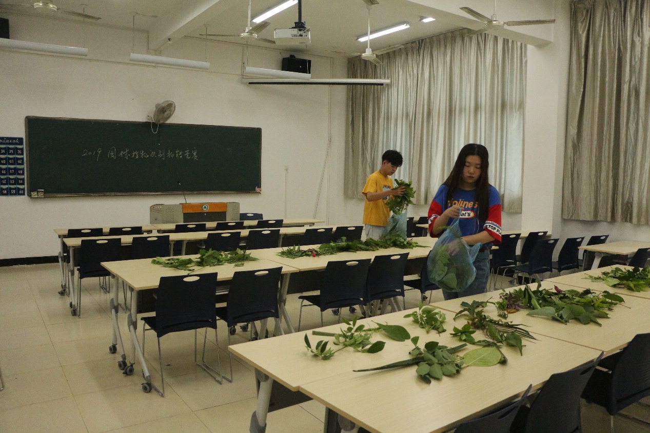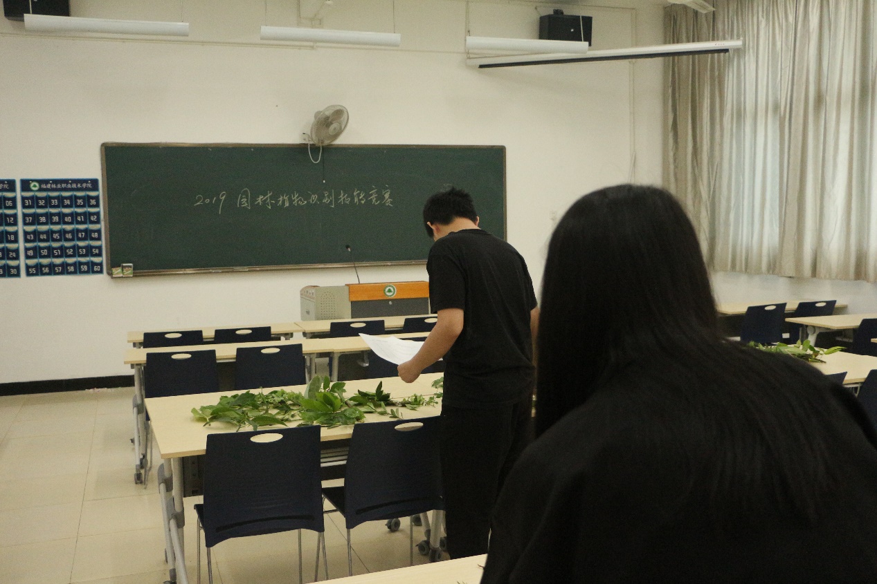 本次植物识别技能大赛,各班选手积极报名参赛,在候考室进行着赛前准备。志愿者则在考核场地进行考前布置,将考核所需植物平铺于桌上。本次竞赛要求在四分钟内两位选手同时进行上百种植物的现场识别考核。选手们在比赛中展示了扎实的基本功,通过植物的形状、触感、气味等特征识别出植物的名称。
