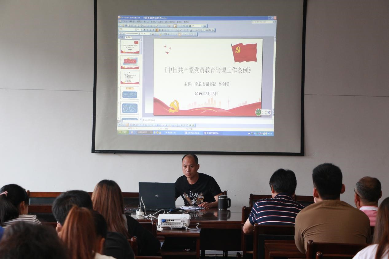 陈剑勇书记依据《中国共产党党员教育管理工作条例》的主要内容,依次向大家作了解读,阐述了总则、如何学习贯彻习近平新时代中国特色社会主义思想、党员教育基本任务、党员日常教育管理主要方式、党籍和党员组织关系管理、党员监督和组织处置、流动党员管理、党员教育管理信息化以及组织领导和工作保障等九部分内容。