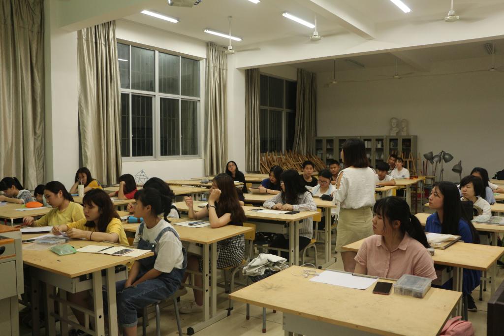 陈宜老师向大家讲解了比赛的规则、要点,提及在比赛中务必要带上的绘画工具。随后,陈宜老师通过图片的形式讲解绘画技巧及细节,期间还与选手们分享在教学和比赛中的趣事。最后,陈宜老师给大家播放绘画视频,提到作品最重要的就是有整体效果。