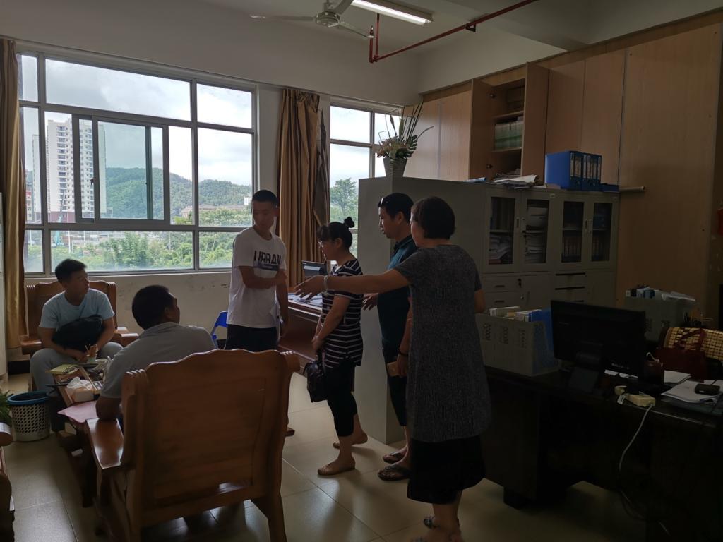 晚上8点,园林系系主任黄华明老师、系党总支副书记陈剑勇老师、系学生科科长吴旻老师、系教学管理科科长陈剑峰老师以及全体新生班辅导员一同走访我系新生宿舍。黄华明老师和蔼可亲幽默风趣,拉近了师生间的距离,给新生们送去了温情;陈剑勇老师询问同学们在新环境下的生活状态,同他们拉家常,叮嘱道军训时期条件艰苦应该照顾好自己。师生之间其乐融融,亲情般的关怀和温馨沁入每位同学的心中。