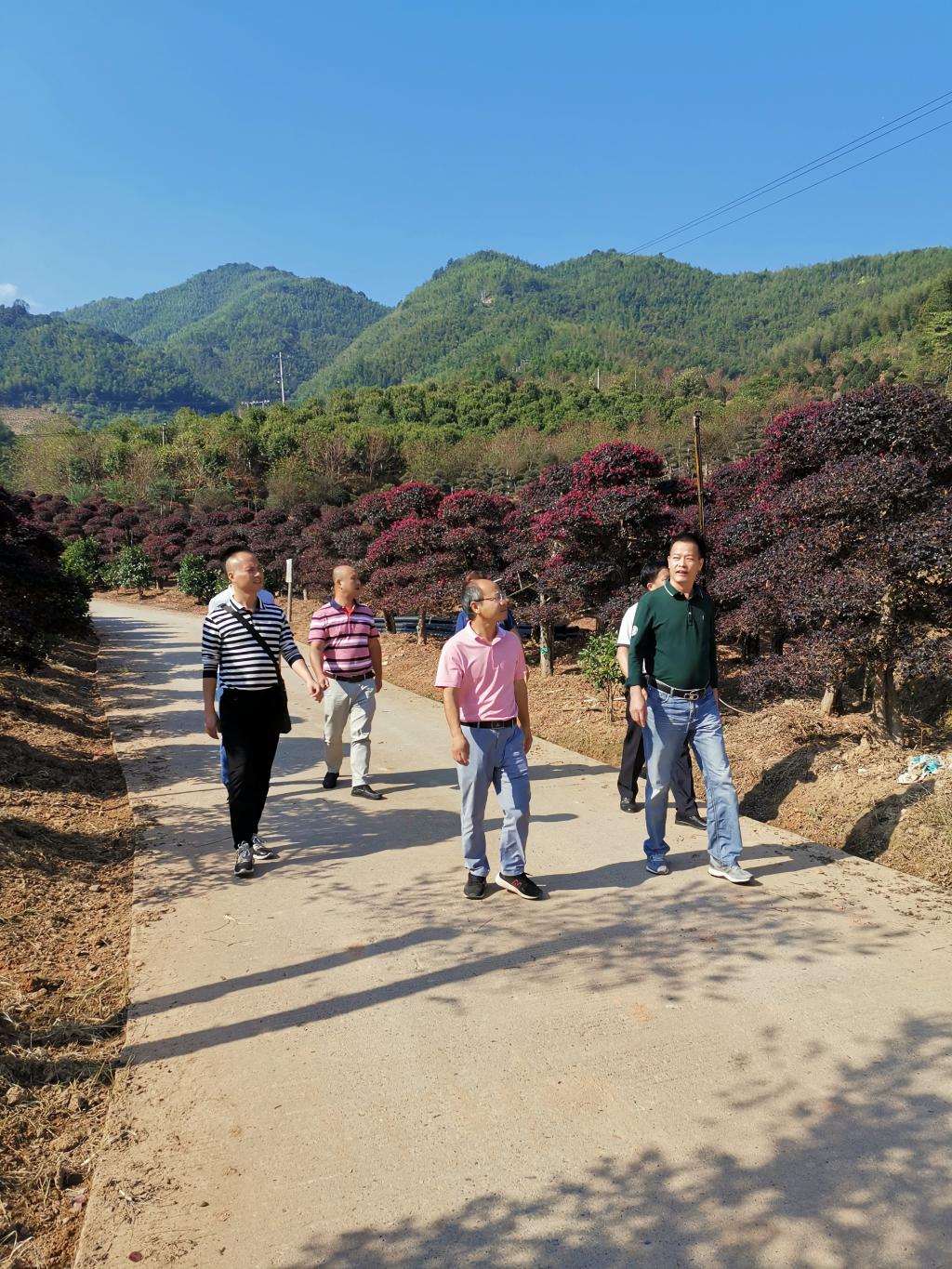 随后,大家在公司李董事长、吴经理和陈场长的带领下对苗木基地进行实地考察。成立于2014年2月的福建昊铭现代农业发展有限公司,短短五年多成绩斐然,基地已建成全国最大红花檵木树桩造型基地,公司业务遍及南方各省市,年产值达1亿元。公司位于有四贤故里、邹鲁名邦之韵的延平,京福高铁、鹰厦铁路、横南铁路、京台高速互通、316、205国道穿行而过,交通十分发达便利。其苗木生产培育基地座落在道教名山——米山,理学大师罗从彦故居地。集人文与自然景观为一体的现代农业山庄,项目占地面积2136亩,投资规模达2.3亿元,目前已引进培育了美国红枫、香樟、红叶石楠、红花檵木树桩盆景、金叶水杉、蓝花楹、桂花、银杏、日本樱花、罗汉松、紫薇、金花茶、红豆杉、加宝果、海南黄花梨、沉香木、金丝楠木、红花勒杜鹃等10余种珍稀树木,另有几十种绿化苗木和特色农业。