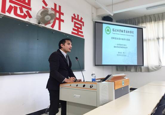 10月29日下午,台湾黄柏钦博士应邀于我校实训四210作《台湾美丽乡村园林景观营销案例分享》讲座,黄柏钦博士现为阳光学院副教授,园林系全体专兼职教师、2018级园林技术专业学生参加讲座,讲座由园林系主任黄华明副教授主持。