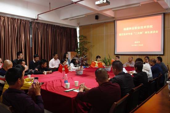 2019年11月8日上午11:30,园艺技术专业“二元制”师生座谈会在实训一三楼园林系会议室举行,园林系教学管理科科长陈剑峰老师、学生科科长吴旻老师、园艺技术二元制班主任张称称老师、园林系教师陆梅老师、黄梓良老师及全体园艺技术“二元制”同学参加了本次座谈会。座谈会由园林系主任黄华明副教授主持。