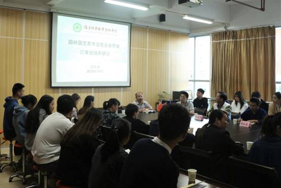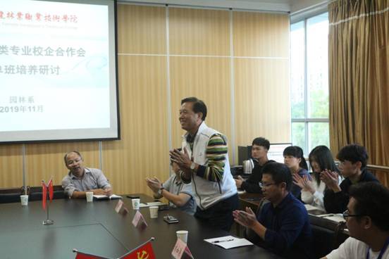 2019年11月12日下午,园林系于实训一三楼会议室召开召开职教集团专业校企合作研讨会。与会人员有:福建省花卉协会会长彭盛易、福建省闽宏农业发展有限公司董事长陈逢贵、厦门宏旭达园林环境有限公司项目经理林如浪、福建省雅林建设集团有限公司HRD鲍浩辉、园林系主任黄华明、学生科长吴旻、园林系全体专兼职教师及部分学生干部参加会议。会议由园林系主任黄华明主持。