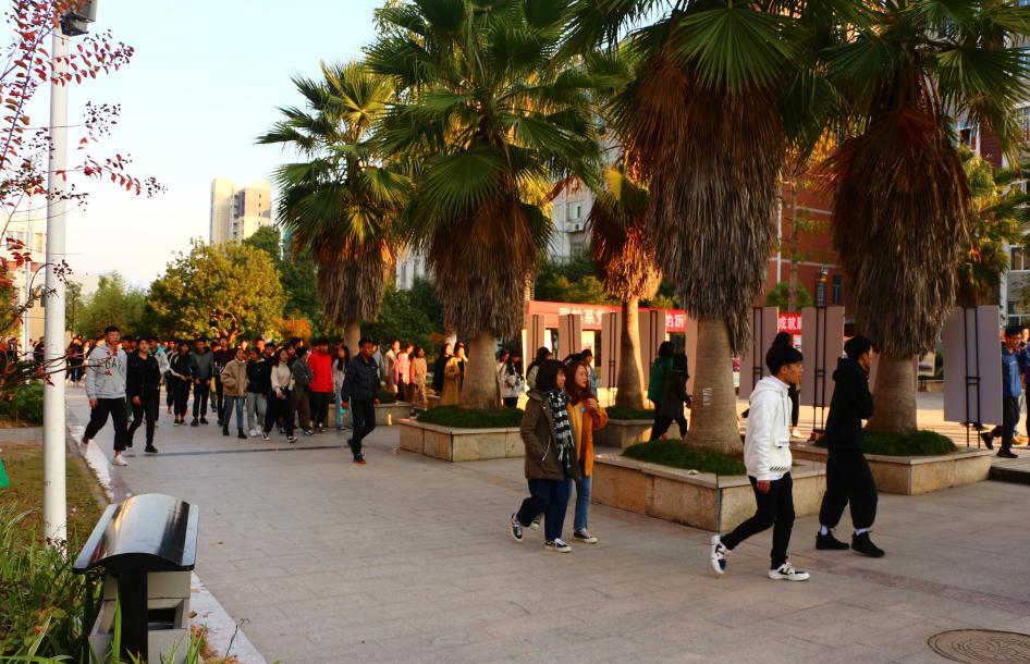 下午16:10,尖锐又急促的警笛声响起,学生们在辅导员和工作人员的引导下快速撤离教室,手捂住口鼻,从各个消防安全通道迅速、冷静、有序地快步下楼,疏散到中心广场的安全地带。师生们始终保持着严肃认真的态度,不抢道,不惊慌,听从指挥,严格按照防灾自救疏散程序进行,整个演练过程顺利高效,用时不到5分钟。