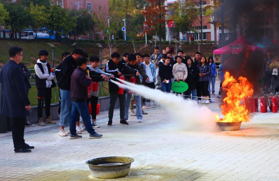灭火演练中,保卫科对参与人员进行分组、分批次边指导边实践,在模拟火灾现场的环境下进行实地灭火练习,并及时纠正操作不规范人员的动作,使参与者人人都在演练过程中都得到实践灭火操作体验。