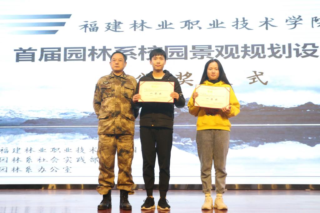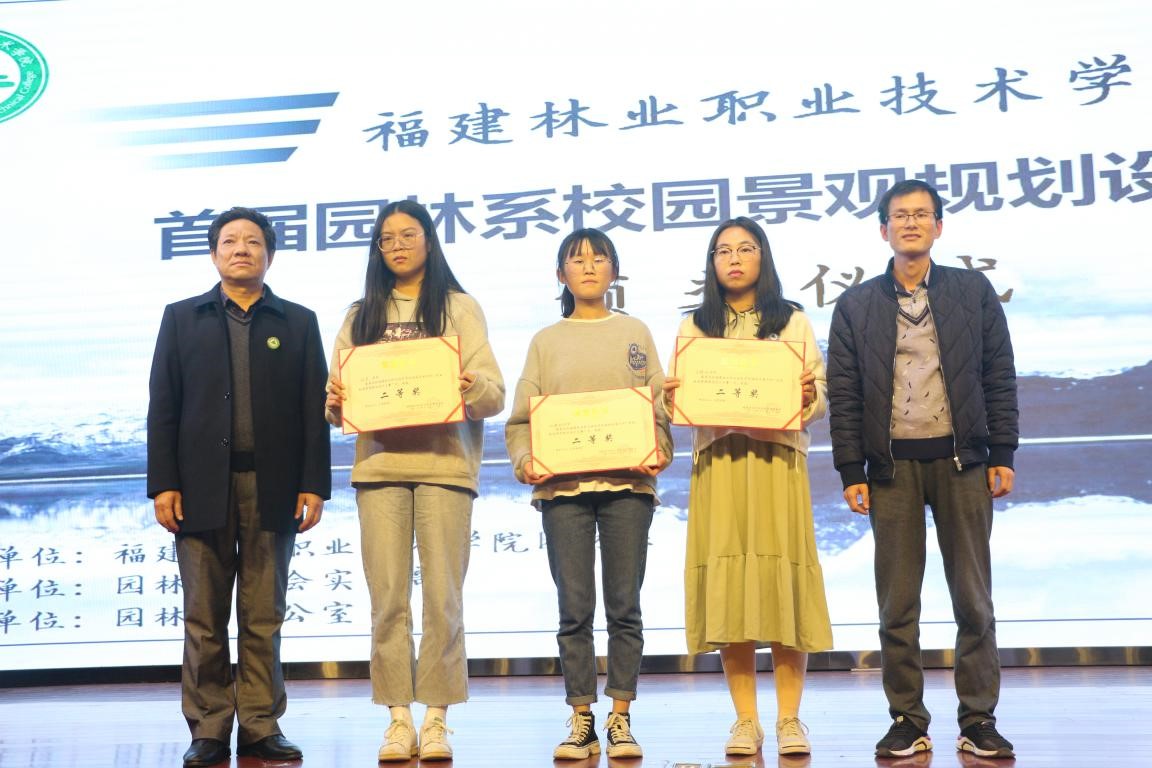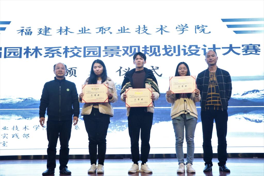 系主任黄华明、园林系党总支副书记陈剑勇为三等奖的选手们颁奖。