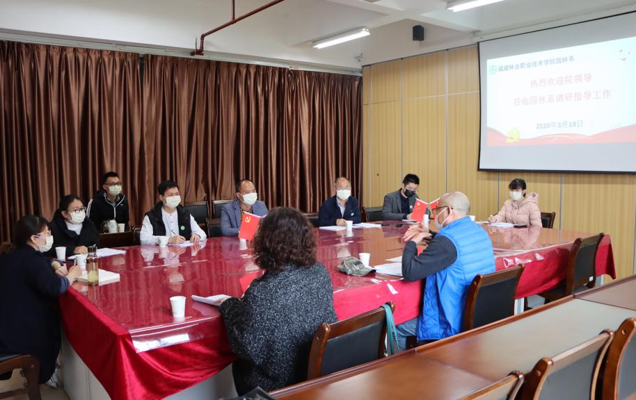 2020年3月18日上午,院党委书记万泉到园林系党总支调研指导基层党建工作。党委工作部组织科科长薛莉陪同调研。园林系党政领导陈剑勇、黄华明、陈剑峰、吴旻、张称称及全体专职辅导员参加了调研座谈会。