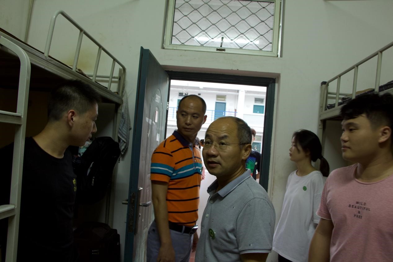 黄华明主任明确提出学生工作要落到实处,强调寝室的文明、卫生与和谐关系着校园的安定团结,学工队伍要着重关注、定期走访,发现存在的问题,解决出现的困难。同时陈剑勇书记要求辅导员要经常深入学生宿舍,多和学生交流、沟通,与学生交朋友,帮助学生更好地成才。黄华明主任和陈剑勇书记每走到一间宿舍都会和同学们亲切地交谈,关心同学们的学习生活等情况,鼓励同学们要志存高远,努力学习,互相帮助,共同进步。