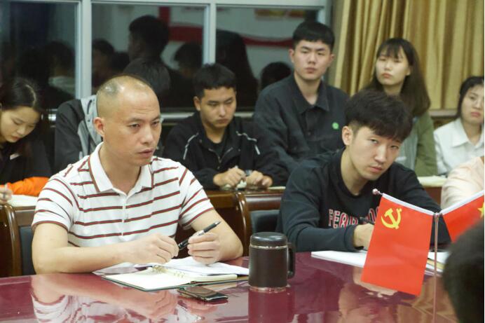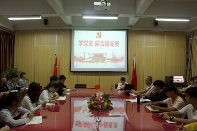 2020年10月5日晚上八点,为切实加强入党积极分子政治理论学习,提升入党积极分子的政治理论素养,园林系学生党支部于系会议室开展“学党史,做合格党员”的党课活动。园林系全体在校积极分子参加学习,园林系党总支书记陈剑勇老师、辅导员孙钰、刘延君老师出席,此次党课活动由园林系学生党支部书记吴锦鸿老师主持。