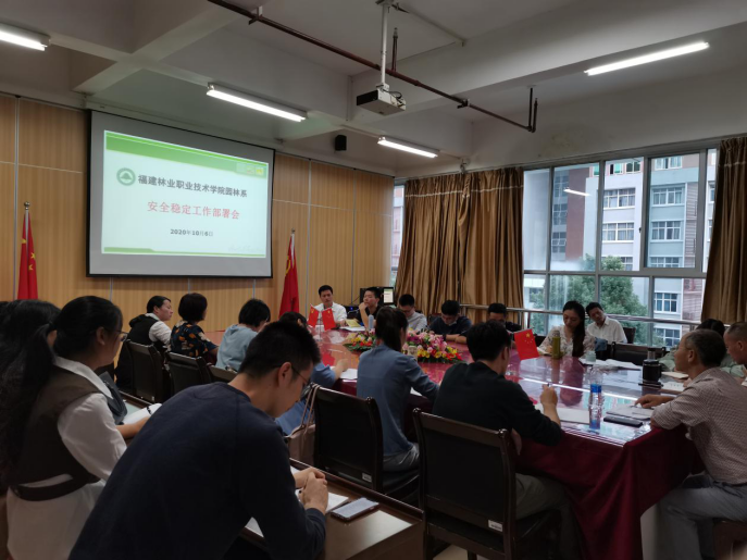 2020年10月6日下午,园林系在系会议室召开了安全稳定工作部署会议,我系全体专兼职教师参加了会议。会议由系党总支书记陈剑勇主持。