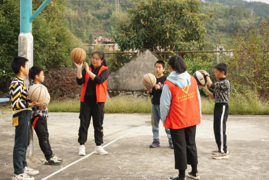 体育课上,志愿者们和小朋友们玩起了跳皮筋,并带领他们一起打篮球,小朋友们以极高的热情簇拥着志愿队员,认真地听队员们讲授的体育知识。在度过欢快的两节课程后,本次活动正式落下帷幕。