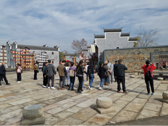 第二站,大家寻访了考亭古街。考亭古街位于建阳区考亭村,再现了大宋“清明上河图”繁华市景,融入非遗文化,整合特色商业,展示古建阳特色民生情景。在古街漫步中,大家学习了闽北传统古民居的建筑风格与高差景观地形的处理方式,了解了建筑景观空间与人的尺度关系。