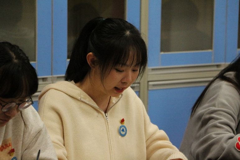 预备党员杨捷发言道:通过学习十九届六中全会精神,使我感受颇深,作为一名大学生预备党员,努力学习党中央精神是义不容辞的责任,让我坚定了入党的决心,对共产党有了更加全面的认识。我们作为大学生党员应该紧密的团结在党中央的领导下,坚持党的指挥,不做表面文章,要发扬钉子精神,才能更好地肩负起新时代的责任和使命。