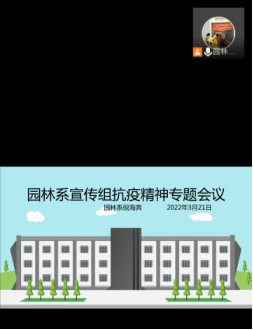 为了进一步加强园林系网络舆情的监管与督导,提升系部宣传部门负责人员对于网络前沿资讯的新闻撰写能力与实践经验。2022年3月21日晚19:30,园林系积极响应人员不聚集的原则,于腾讯会议召开宣传组线上会议。本次会议由倪海奔老师主持,系记者站、新媒体部等宣传部门负责人参与。